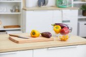 Świeże warzywa na drewnianym stole w kuchni, naturalne jedzenie i zdrowy styl życia tło