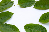 Mitragyna speciosa, świeże liście kratom na białym tle