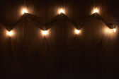 Klasyczne tło. Świąteczne żarówki na starym tle drewna