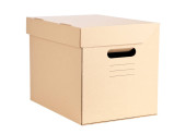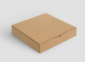 papierowe pudełko przykryte klapą z bocznego punktu widzenia. duży brązowy kolor karton makieta izolowane na białym tle.