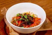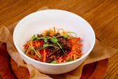 Azjatycka pikantna sałatka wołowa z warzywami i sosem