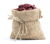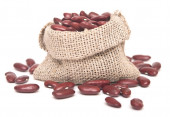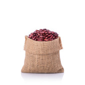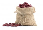 Surowa czerwona fasola nerki z workiem worka izolowane na białym