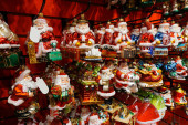 Szczęśliwego Nowego Roku i Wesołych Świąt. Świąteczne dekoracje. Błyszczące gałązki, błyszczące kulki, girlandy, światła i latarnie. Piernik, suszone owoce, orzechy. Przygotowanie do Bożego Narodzenia w domu i na ulicach.