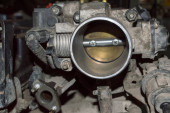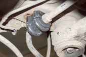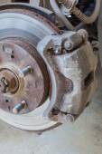 Na tylnej lewej tarczy hamulcowej samochodu zamontowany jest nowy zacisk hamulcowy.