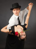 Zdjęcie "profesjonalnych tancerzy, dziewczynka gospodarstwa wzrosła w usta" może być wykorzystywane do celów osobistych i komercyjnych zgodnie z warunkami zakupionej licencji Royalty-free. Obraz jest dostępny do pobrania w jakości wysokiej rozdzielczości do 5760x3840.