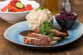 Zdjęcie "pieczona wieprzowina bawarska z pierogami" może być wykorzystywane do celów osobistych i komercyjnych zgodnie z warunkami zakupionej licencji Royalty-free. Obraz jest dostępny do pobrania w jakości wysokiej rozdzielczości do 5760x3840.