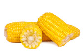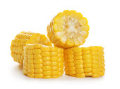 kawałek słodkiej kukurydzy i nasion wyizolowanych na białym tle.