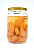 Smaczny dżem jabłkowy w szklanym słoiku izolowanym na białym