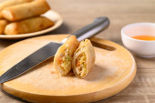 Zdjęcie "Azjatyckie smażone sajgonki nadziewane tofu i makaronem szklanym jedzącym z sosem chili" może być wykorzystywane do celów osobistych i komercyjnych zgodnie z warunkami zakupionej licencji Royalty-free. Obraz jest dostępny do pobrania w jakości wysokiej rozdzielczości do 5760x3840.
