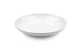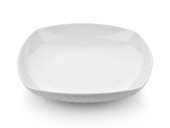 Pusta biała płyta ceramiczna izolowana na białej czarnej ziemi.