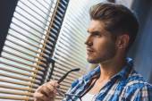 zbliżenie zdjęcie dorywczo młody człowiek w okularach