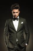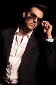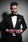 moda mężczyzna guziki jego garnitur na czarnym tle