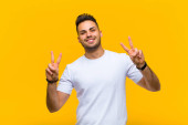 Zdjęcie "młody przystojny mężczyzna uśmiecha się i wygląda przyjaźnie, pokazując numer trzy lub trzeci z ręką do przodu, odliczając w dół" może być wykorzystywane do celów osobistych i komercyjnych zgodnie z warunkami zakupionej licencji Royalty-free. Obraz jest dostępny do pobrania w jakości wysokiej rozdzielczości do 5760x3840.