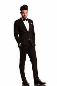 człowiek na sobie Smoking stojący z rękami w kieszeni