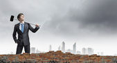 biznesmen z młotem w ręce