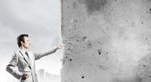 biznesmen z młotem w ręce
