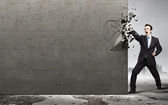 biznesmen z młotem w ręce