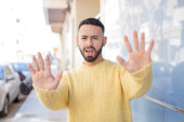 Zdjęcie "młody przystojny mężczyzna czuje się przerażony, wycofuje się i krzyczy w przerażeniu i panice, reagując na koszmar" może być wykorzystywane do celów osobistych i komercyjnych zgodnie z warunkami zakupionej licencji Royalty-free. Obraz jest dostępny do pobrania w jakości wysokiej rozdzielczości do 5760x3840.