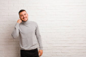 młody przystojny mężczyzna smutny i zestresowany, zdenerwowany z powodu złej niespodzianki, z negatywnym, niespokojnym spojrzeniem