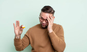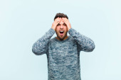 młody przystojny mężczyzna czuje się zszokowany, zdumiony i zaskoczony, trzymając okulary ze zdumionym, niedowierzającym spojrzeniem