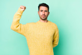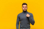 Zdjęcie "młody przystojny mężczyzna czuje się poważny, silny i buntowniczy, podnosząc pięść, protestując lub walcząc o rewolucję" może być wykorzystywane do celów osobistych i komercyjnych zgodnie z warunkami zakupionej licencji Royalty-free. Obraz jest dostępny do pobrania w jakości wysokiej rozdzielczości do 5760x3840.