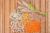 inne ziarna, dziki ryż, soczewica, gryka, ciecierzycy i kukurydzy.