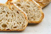 Toast z nasionami na drewnianym stole, widok z góry z miejsca na ksero