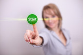 Zdjęcie "kobieta palec wcisnąć przycisk start" może być wykorzystywane do celów osobistych i komercyjnych zgodnie z warunkami zakupionej licencji Royalty-free. Obraz jest dostępny do pobrania w jakości wysokiej rozdzielczości do 5760x3840.