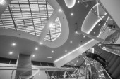 Abstrakcyjne tło z symetrycznymi kształtami nowoczesnego budynku.