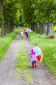 dziewczynki sobie Kalosze z parasolami w wiosna zaułek