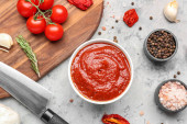 Zdjęcie "Patelnia z organicznym sosem pomidorowym na drewnianym tle" może być wykorzystywane do celów osobistych i komercyjnych zgodnie z warunkami zakupionej licencji Royalty-free. Obraz jest dostępny do pobrania w jakości wysokiej rozdzielczości do 5760x3840.