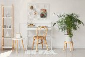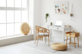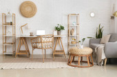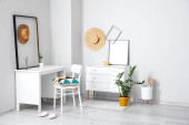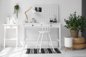 Nowoczesne miejsce pracy z ramą w pobliżu ściany światła w pokoju