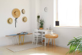 Zdjęcie "Nowoczesne miejsce pracy z ramą w pobliżu ściany światła w pokoju" może być wykorzystywane do celów osobistych i komercyjnych zgodnie z warunkami zakupionej licencji Royalty-free. Obraz jest dostępny do pobrania w jakości wysokiej rozdzielczości do 5760x3840.
