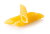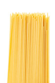 surowe spaghetti zbliżenie na białym pojedynczym tle