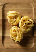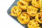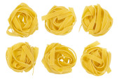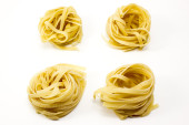 surowe gniazdo makaronu na białym, izolowanym tle