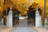 herfst kleuren en de poort van de nationale begraafplaats van gettysburg, p