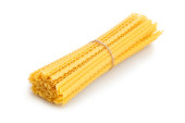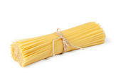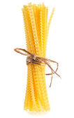 surowe spaghetti na białym, izolowanym tle z plastrem