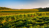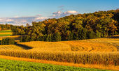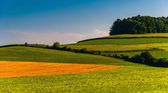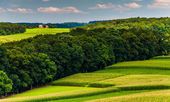 pola i drzewa na zboczu wzgórza w wiejskich york county, pennsyl