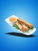 Zdjęcie "Widok nad głową na sajgonki z pikantnym sosem odizolowany na białym ze ścieżką wycinania" może być wykorzystywane do celów osobistych i komercyjnych zgodnie z warunkami zakupionej licencji Royalty-free. Obraz jest dostępny do pobrania w jakości wysokiej rozdzielczości do 5760x3840.
