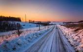 droga przez śnieg pokryte pola w wschodniej york county, pe