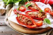 Zdjęcie "pyszne Nadziewane papryki w patelni na stół szczegół" może być wykorzystywane do celów osobistych i komercyjnych zgodnie z warunkami zakupionej licencji Royalty-free. Obraz jest dostępny do pobrania w jakości wysokiej rozdzielczości do 5760x3840.