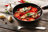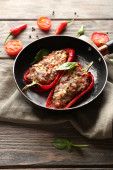 pyszne Nadziewane papryki w patelni na stół szczegół