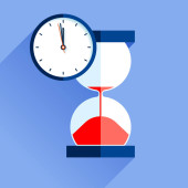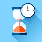 Czas to pieniądz. Ikony klepsydry i zegara analogowego w płaskim stylu, zegar z piasku na tle koloru. Elementy wektorowe projektu dla Ciebie