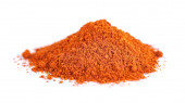 Czerwony proszek pieprzowy umieszczony na białym tle. Pieprz cayenne i papryka w proszku.