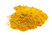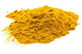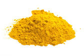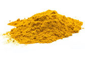 Suchy kurkuma w proszku na białym tle; Curcuma domestica pow