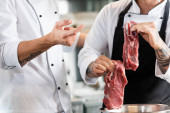 Zdjęcie "Widok na wytatuowanego szefa kuchni trzymającego nóż i por w plasterkach w kuchni " może być wykorzystywane do celów osobistych i komercyjnych zgodnie z warunkami zakupionej licencji Royalty-free. Obraz jest dostępny do pobrania w jakości wysokiej rozdzielczości do 5760x3840.