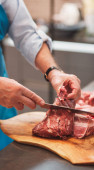 Zdjęcie "Widok na szefa kuchni gospodarstwa surowe mięso w pobliżu miski i kolega w kuchni " może być wykorzystywane do celów osobistych i komercyjnych zgodnie z warunkami zakupionej licencji Royalty-free. Obraz jest dostępny do pobrania w jakości wysokiej rozdzielczości do 5760x3840.