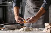 Zdjęcie "Widok na wytatuowanego kucharza robiącego ciasto w pobliżu rozmazanego kolegi w kuchni " może być wykorzystywane do celów osobistych i komercyjnych zgodnie z warunkami zakupionej licencji Royalty-free. Obraz jest dostępny do pobrania w jakości wysokiej rozdzielczości do 5760x3840.