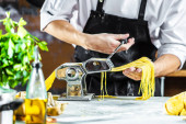 Zdjęcie "Widok maszyny makaron makaron z spaghetti w kuchni " może być wykorzystywane do celów osobistych i komercyjnych zgodnie z warunkami zakupionej licencji Royalty-free. Obraz jest dostępny do pobrania w jakości wysokiej rozdzielczości do 5760x3840.