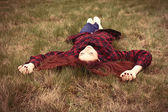 młode piękne dziewczyny leżącej w żółtym polu jesień.